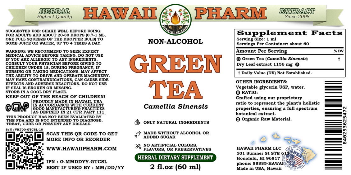 Green Tea Alcohol-FREE Liquid Extract, Green Tea (Camellia Sinensis) Dried Leaf Glycerite